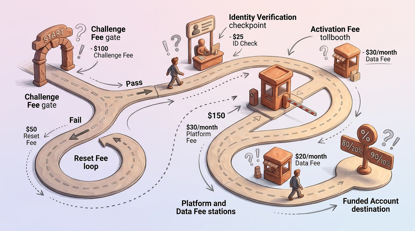 In this guide, we're going to do what almost nobody does: model the true total cost of ownership across both fee structures using three realistic trader scenarios. We'll account for challenge pass rates, reset fees, data feeds, platform costs, and the compounding effect of multiple attempts. By the end, you'll have a clear framework for determining which model genuinely saves you money — not which one looks cheaper on a marketing page.
